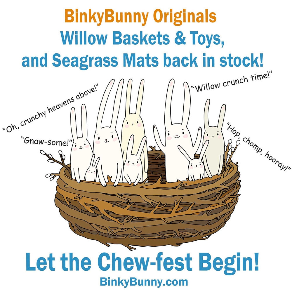 Whether it’s for a midday nap, a nibble session, or a dramatic bunny flop, this tent delivers cozy vibes and chew-approved fun. Hang toys from it. Put a XL Sea Grass Mat Under it. The perfect place for Nap and Play.