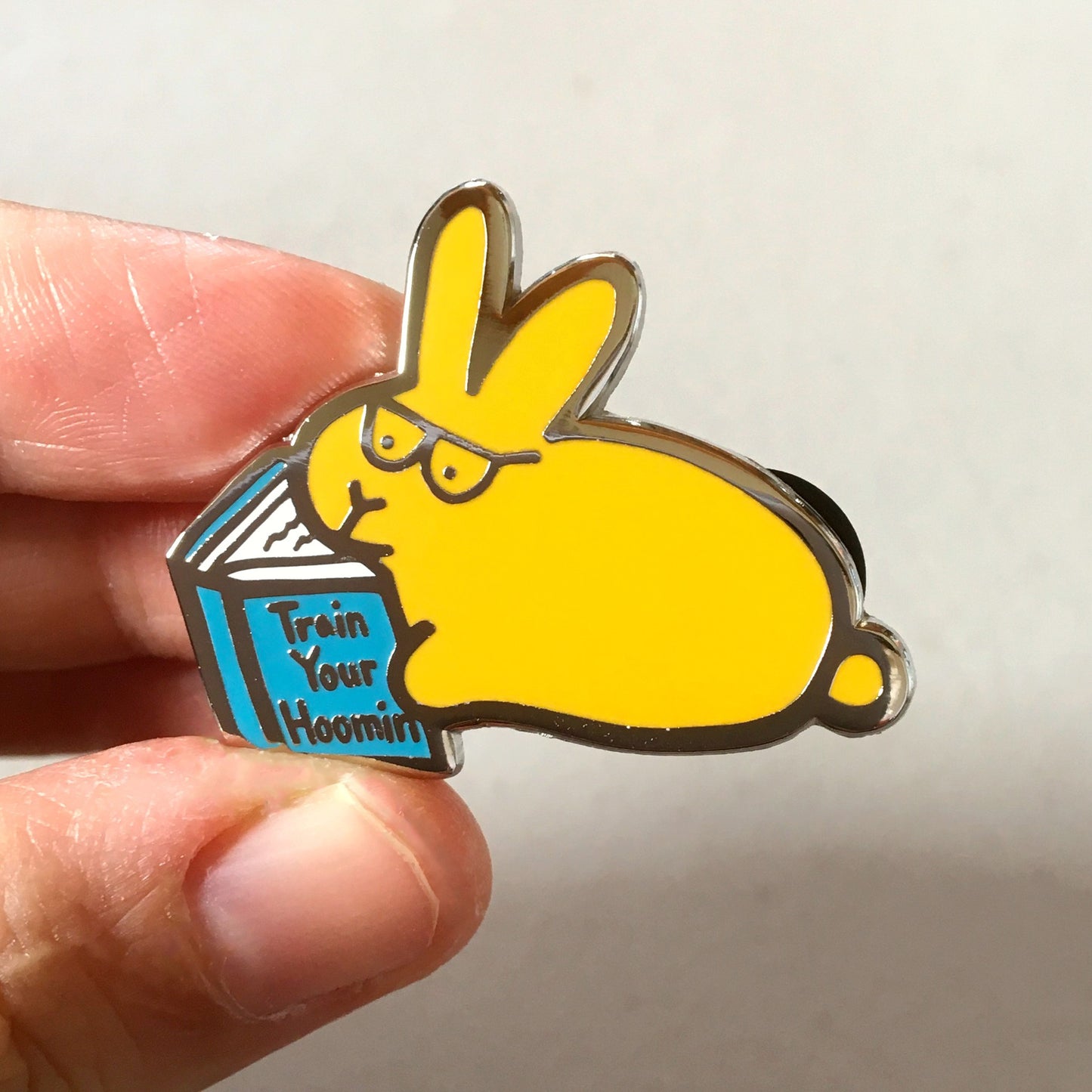 - Book bunny is mustard brown with a blue book that says "Train Your Hoomin."