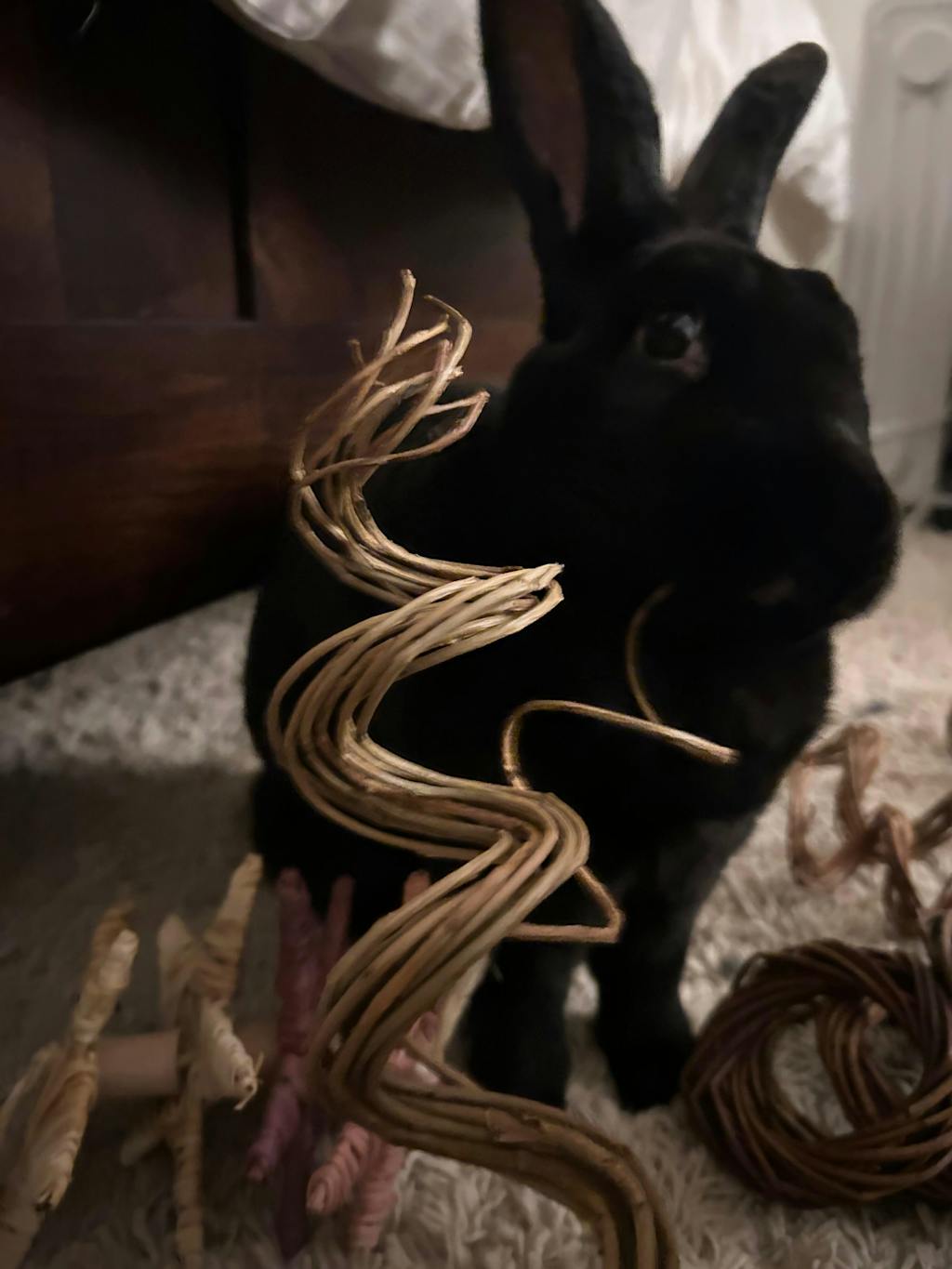 my rabbit is a fan of all of the willow products, but this shape specifically sparks a lot of interest from him. he likes starting at the untied end. he goes through these pretty quick so 6 pack is a must