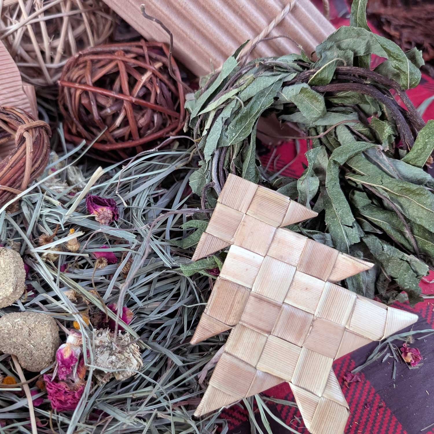 This is the holiday haul—packed with festive toys, fragrant forage, crunchy chews, and irresistible surprises that turn your rabbit’s space into a full-blown seasonal play party. They’ll go straight for the willow wreath to settle in and chew, work their way through vine and willow toys, take on the sunflower log, dig through chamomile-and-plantain sprinkles, and tear into the bunny-shaped DIY treat box as the ultimate creative enrichment toy - plus so much more. If your rabbit could make a wish list, this would be the whole thing in one box.