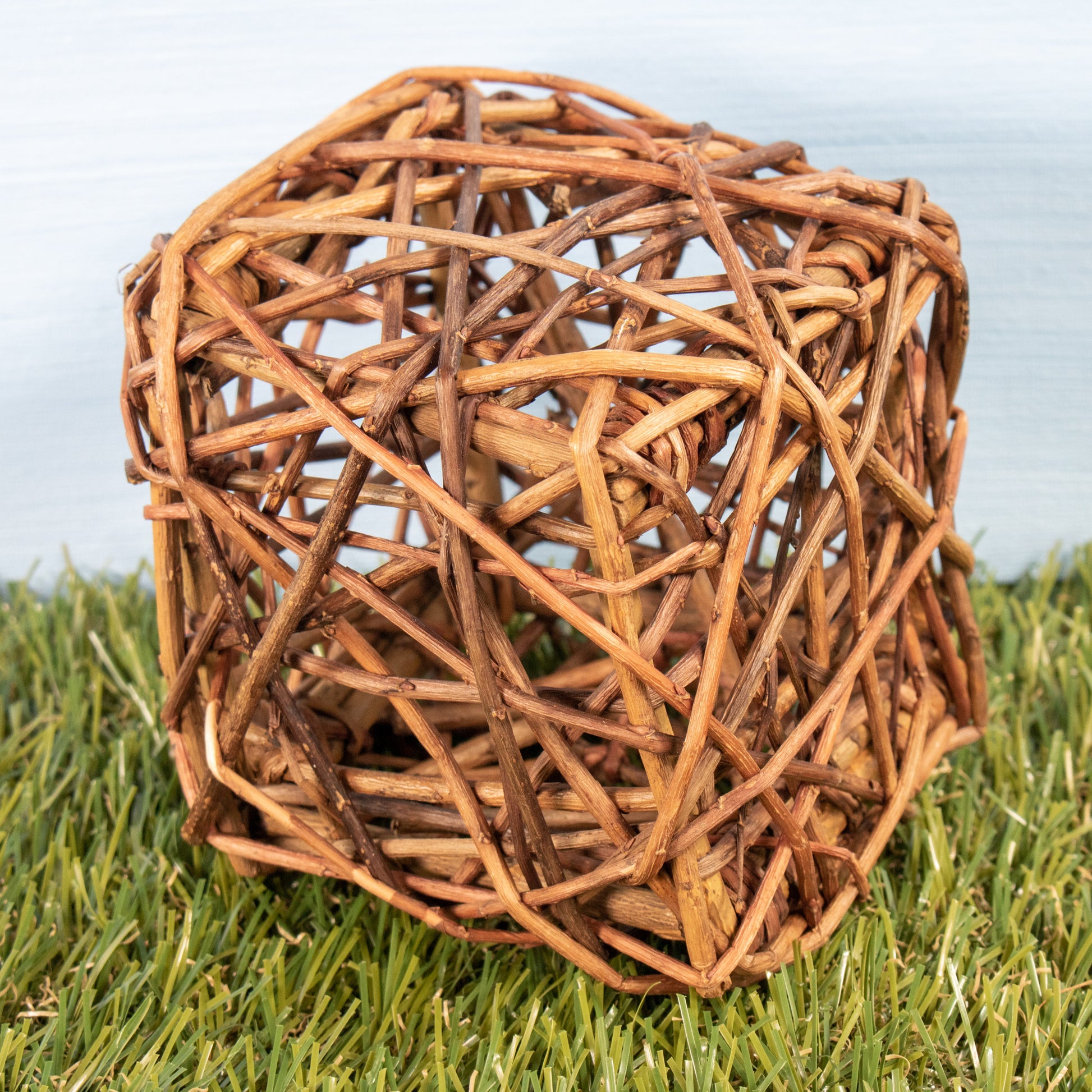 A large willow cube made of natural unpeeled willow. The square shape is great for bunnies that like their toys to stay put so they can sink their choppers in. And like the Willow Ball, you can still snuggly fit treats in the cube's nook and crannies; A great way to turbo charge it!